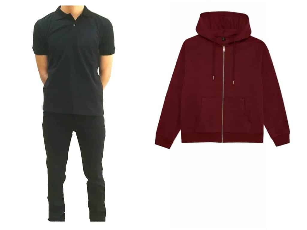 OKUL FORMAMIZ (Siyah lakost tişört, bordo önden fermuarlı kapişonlu sweatshirt, siyah kanvas pantolon)